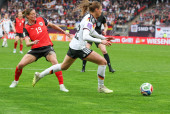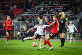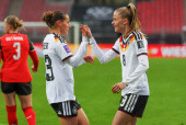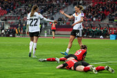 Deutschland vs. Oesterreich, Fussball, Frauen, Qualifikation zur Frauen-WM, Gruppenphase, Gruppe D, Spieltag 3 von 6, Saison 2025/26, 14.04.2026